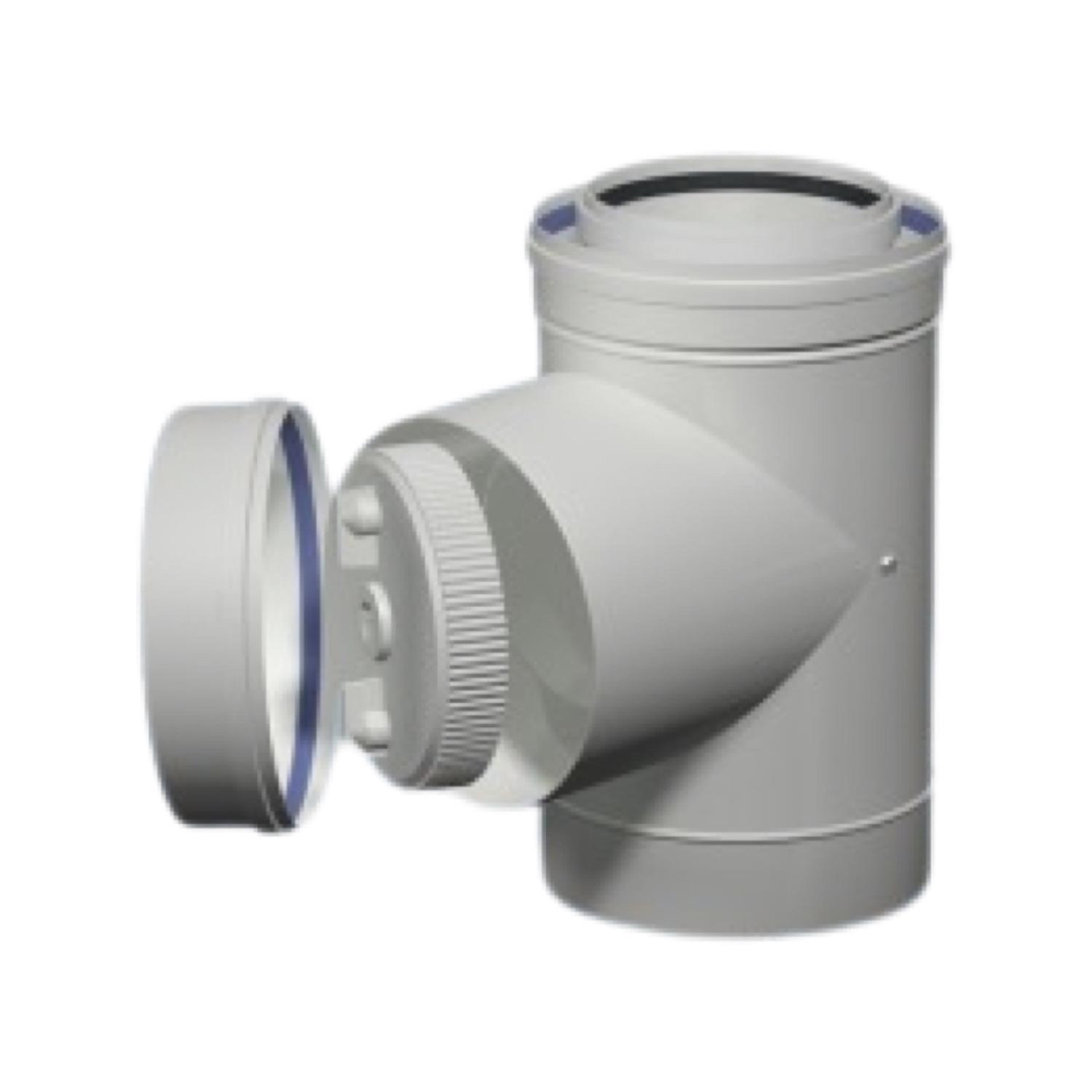 Het inspectie-element uit de C93X-serie van Skoberne is ontworpen voor een eenvoudige en veilige visuele controle of reiniging van concentrische rookgasafvoersystemen in cascade-opstellingen en is beschikbaar in de diameters ø80/125 en ø110/160. Dankzij de duurzame opbouw in aluminium en polypropyleen biedt het element een betrouwbare afdichting en optimale bescherming tegen condensaat en rookgassen, terwijl het tegelijkertijd toegankelijk blijft voor onderhoud. Dit maakt het inspectie-element een essentieel onderdeel voor de werking, veiligheid en levensduur van condensatiesystemen met meerdere toestellen.