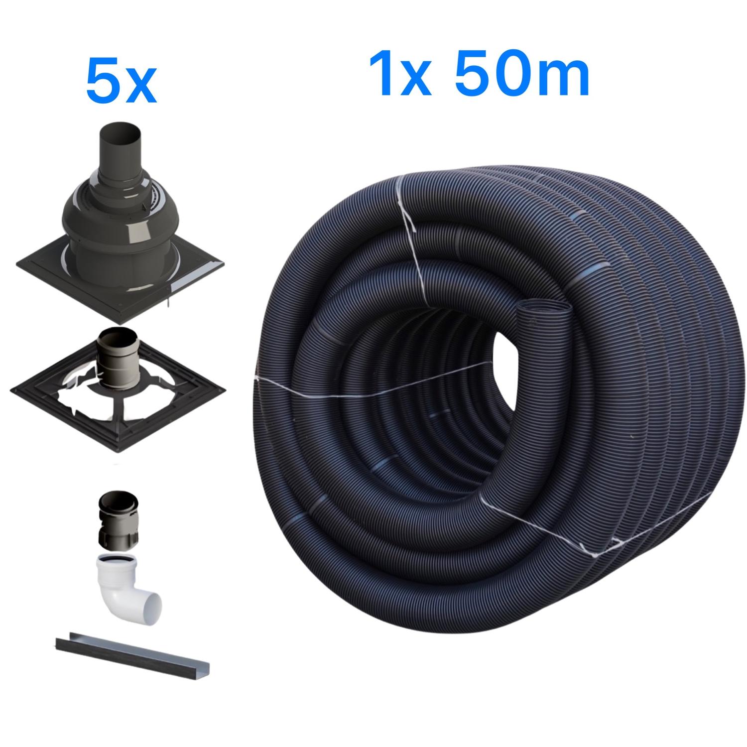 KIT UV-bestendige flexibel rol Ø80 50 meter + 5x schouwkit