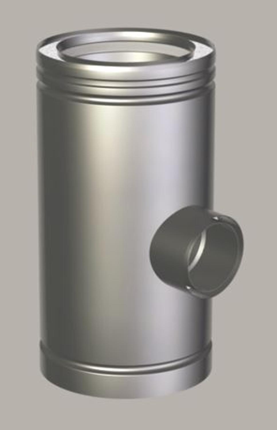 Deze 87° T-stukken met verloop naar UE uit het Metaloterm MF-gamma maken een veilige en efficiënte overgang mogelijk van een dubbelwandige rookgasafvoer naar een enkelwandig uitlaatkanaal. Ze zijn vervaardigd uit inox 316 en voorzien van een luchtspouwconstructie voor optimale thermische isolatie. Dankzij de geïntegreerde elastomeerdichting garanderen ze een gasdichte en condensvrije aansluiting. Dit type T-stuk is ideaal voor toepassingen waar een inspectiepunt of condensopvang gecombineerd wordt met een aansluitmogelijkheid op een UE-leiding. Geschikt voor hoge temperaturen en condensatiesystemen, en leverbaar in diverse diameters voor uiteenlopende installaties.