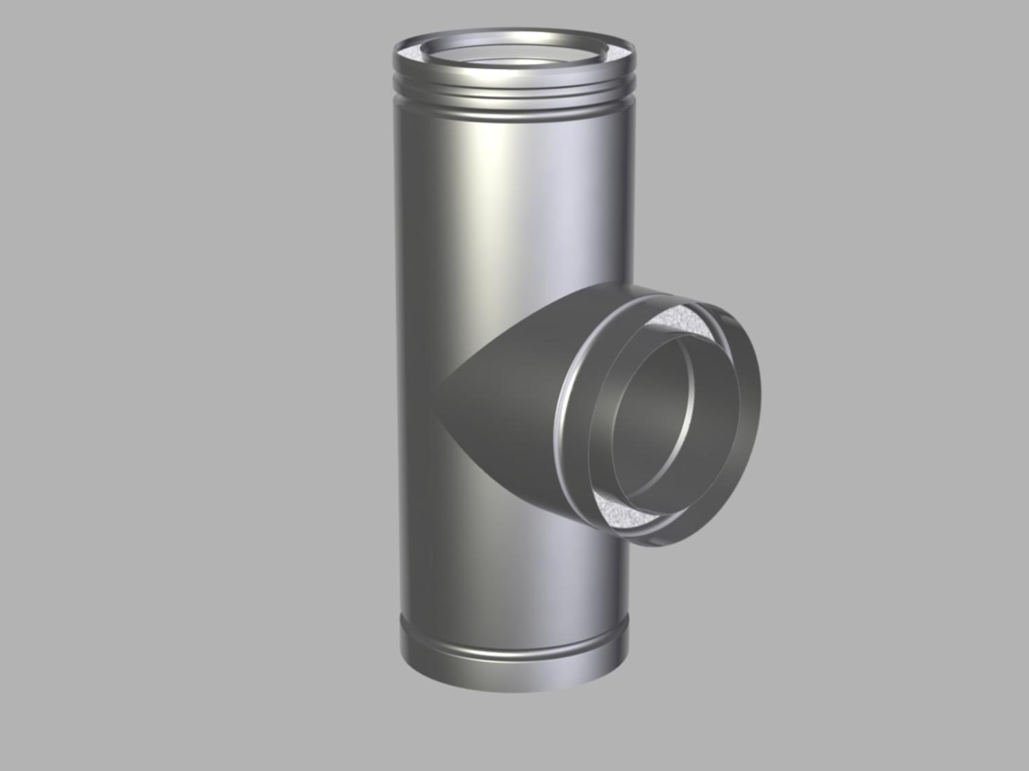 Deze T-stukken van 90° uit de Metaloterm MF-reeks zijn ontworpen voor rookgasafvoerinstallaties waarbij een zijwaartse aansluiting onder een scherpe hoek vereist is. De dubbelwandige constructie in hoogwaardig inox 316 met een dikte van 0,6 mm zorgt voor een robuuste en duurzame oplossing, geschikt voor hoge temperaturen en condensbestendige toepassingen. Elk T-stuk is voorzien van een geïntegreerde elastomeerdichting die een veilige en lekdichte verbinding garandeert, en wordt doorgaans toegepast in verticale rookgaskanalen waar onderhoud of inspectie via een zijaansluiting nodig is. Dankzij het brede aanbod in diameters zijn deze componenten geschikt voor zowel residentiële als industriële installaties.